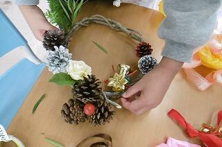 【もう、そういう季節なんですねぇ~。クリスマスリースづくりでした。完成したら、またホームページで紹介します。】