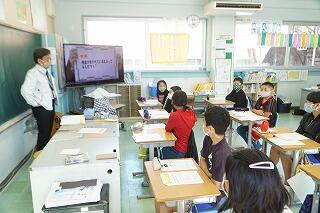 11月13日(金)、役場税務課の谷川様と甲斐様、梅田司法書士事務所の坂本様、町議員の高舘様のご協力をいただき、租税教室を行いました。