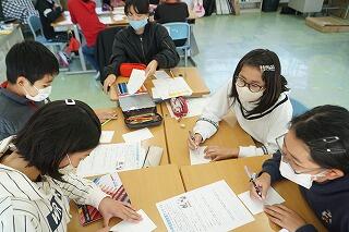 最後に、税に関する標語を考え、絵はがきに表現する活動を行いました。