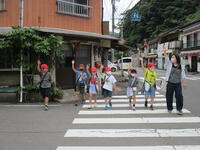 町中を歩きながら、横断歩道を渡る練習もしました。