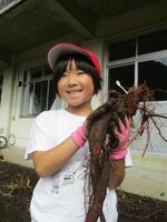 10月30日、1・2年生は生活科で育てたいもの収穫をしました。環境整備員の戸高さんに教えてもらいながら、みんなで力を合わせていもほりを頑張りました。たくさん取れてうれしかったです。