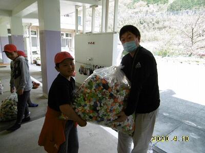 4月10日(金)、1年間保護者や地域の方々に協力いただき、集めてきたペットボトルキャップを社会福祉協議会の方に手渡すことができました。