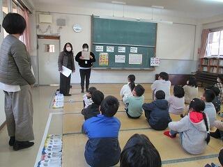 保護者の方の読み聞かせで始まった1・2年生の教室。