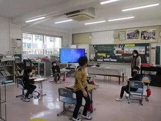 4つの教室に分かれて、読み聞かせを楽しんだ子どもたち。