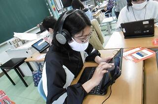 【専用ソフトを使い、物語やゲーム、音楽などをプログラミングしていました。タブレット技能もすごく向上していました!】