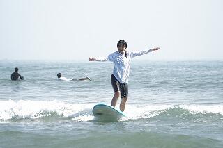 サーフィン体験教室では、参加者全員見事なライディングを決め、その運動能力の高さを見せてくれた子どもたち。