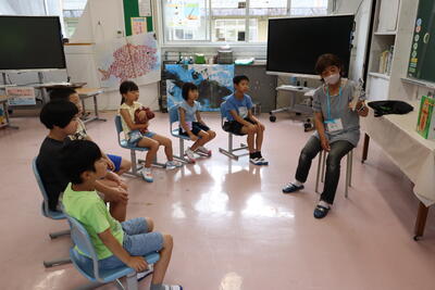 大きくて、緑色をしたお魚に、子どもたちは少し驚いていました。