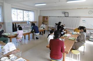 盛りだくさんの参観日も折り返し地点、給食試食会の様子です。