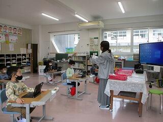 1年生は、国語の「大きなかぶ」でした。実際に演じながら音読を行うことで、「なかなか」「まだまだ」抜けない様子を上手に表現できていました。