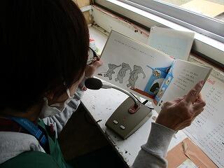 今日のお昼は、図書館支援員の先生の読み聞かせでした。
