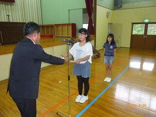 【表彰(愛鳥週間「習字」の部)-谷川あさみさん(右-金賞)、田中こまきさん(左-銀賞)】