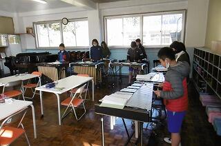 続いて2時間目、音楽室、5・6年生の様子です。