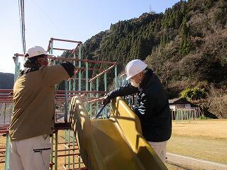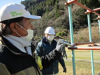 日之影町教育委員会のご配慮で、プロの目による遊具点検を実施していただきました。