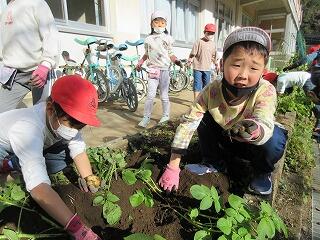 からいもが思うように成長しなかったので、担任の先生方が、じゃがいもも用意してくださいました。