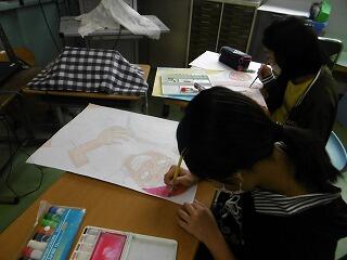 【5・6年図工-小筆を使って、ていねいに色塗りをしていました。】