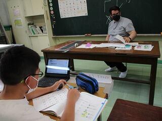 今日の5・6年生の午後の授業は、ロバート先生と外国語活動を行いました。