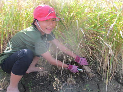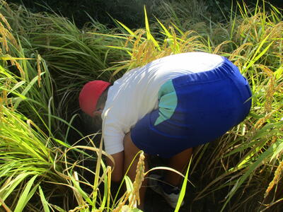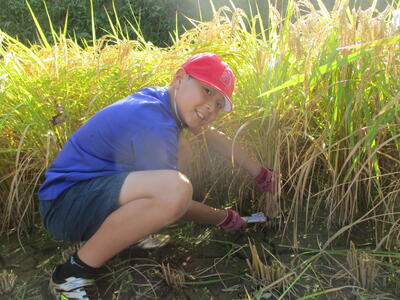 5,6年生9名のうち稲刈り初体験者は、たった1名。