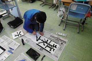起源は、平安時代にさかのぼるといわれる「書き初め」に、3~6年生がチャレンジです。