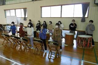 【「ドコドコドコ・・・・。ドンドンドンドン・・・」息の合った和太鼓の音が体育館に響きます。】