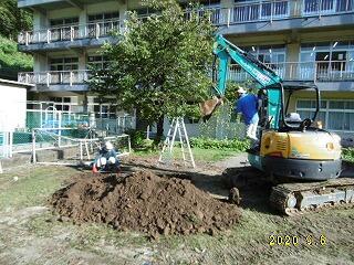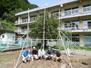 忙しい平日にもかかわらず、何時間もかけて作業していただき、職員一同感謝の気持ちでいっぱいです。令和2年度の保護者の力で立てた唯一無二の掲揚台です。