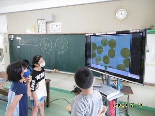 子どもたちは、白い影が青空に映し出される度に、「見えましたぁ!」「すご~い!」と歓声を上げていました。