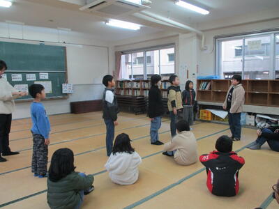 「学習発表会をがんばったこと、今後、次の目標をもって日々がんばること」それから、1年間で16回ある「祝日」についてもお話があり、特に2月にある「建国記念の日」と「天皇誕生日」についてわかりやすく説明をしていただきました。