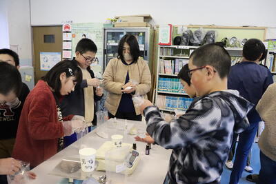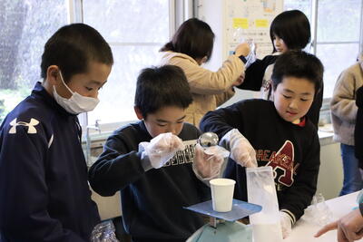 水が氷に変化すると体積が大きくなる!という結果に対して予想と違っていたことに驚いていました。