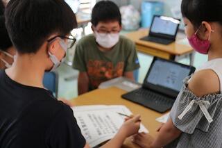 自分の意見をもった後に、グループで話し合い、意見をまとめることで対話力を高めます