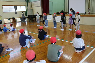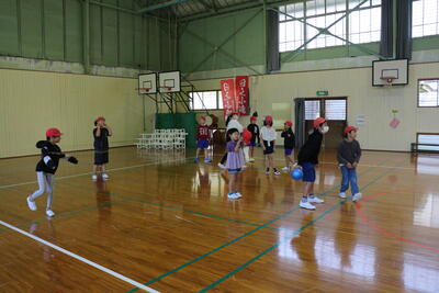 体育館に集まり、みんなで楽しく遊びました。