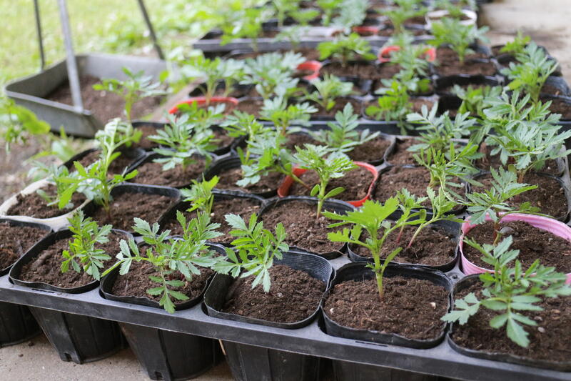1ヶ月後、みんなで育てた花の苗を地域の方々に配付します。