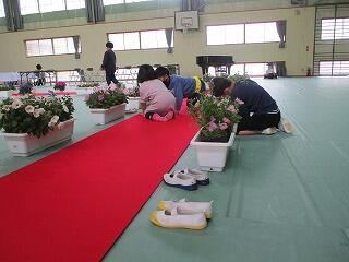 掃除が終わったら、自分たちで育てた花を飾ります。