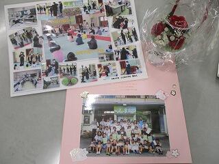 日之影小をいつまでも忘れないで欲しいと、花束の代わりに、日之影の方が作るボトルフラワーをいただきました。