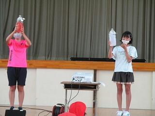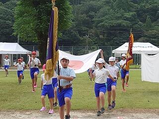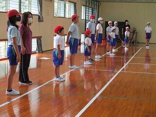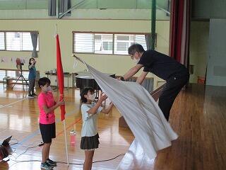 体育主任の先生の楽しいしかけのおかげで、全校児童が一致団結して結団式に臨みました。