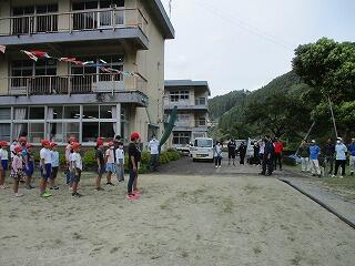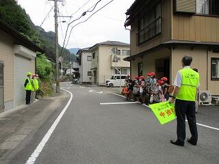 カニの放流の後、日之影町教育委員会主催による通学路点検が行われました。
