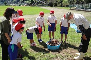 最後は、うねを作ってくださったり、つるを切って準備していただいたり、たくさんお世話をしていただいたお礼を言って、いもほり終了となりました。