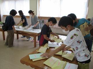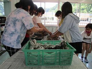 早速、月曜日の朝のボランティアから袋詰めができるように種をほぐしていく5・6年生!!