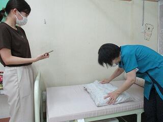 保健室だけでも、マット、布団、枕と三カ所検査をしていただきました。