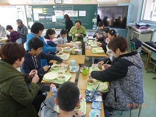 保護者の方々と一緒に給食を食べる機会は、あまりないので、児童はいつも以上に楽しい食事の時間を過ごしていました。