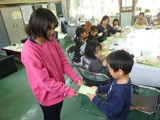 【うれしそうに受け取る1年生