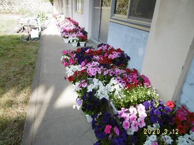 卒業式・修了式を彩るペチュニアやノースポールも満開です。】