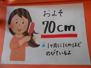 児童はこの6年間で大きく成長しました。身長・体重はもちろん、他にもたくさん成長しました。例えば・・・6年間で伸びた髪の長さは