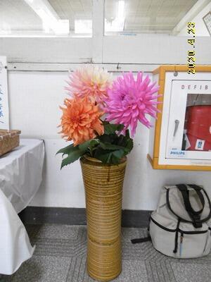 まずは、職員玄関、美しいダリアの花が迎えてくれます。