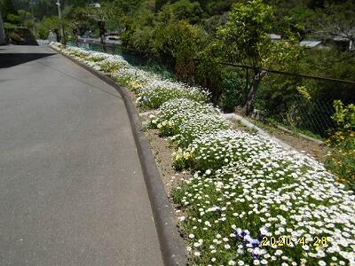 この日を待っていたように、花壇の満開の花がほほえんでいるようです。