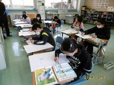 【愛鳥ポスター制作-ていねいに色塗りしていました。】