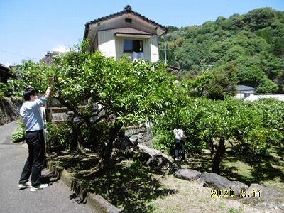 【3・4年生が総合的な学習で取り組む「ゆず学習」。ここは神影地区のゆず畑です。】