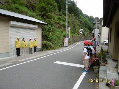神影地区方面から来る児童の登校の様子です。この日もたくさんの見守り隊の方々が立ってくださいました。おかげで児童の安全面はもちろん、あいさつの声も大きくなってきました。