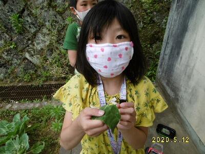 うれしそうに見せてくれました。目に見えないくらいのアオムシです!大切に飼って、モンシロチョウの羽化が見られるといいですね。
