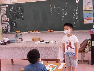 1年生国語「見つけたものを発表しよう」。相手の目を見て発表できましたね。