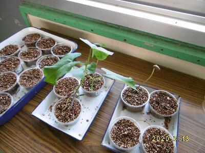 写真のように、種子は「水」「空気」「適温」の三条件さえあれば発芽することができます。日光も肥料も必要ないのです。(写真の土のようなものは、養分の全く入っていないバーミキュライト)