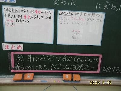 そこで学習問題を「種子の発芽(成長)に必要な養分はどこにあったのだろうか?」と設定し、調べていきました。